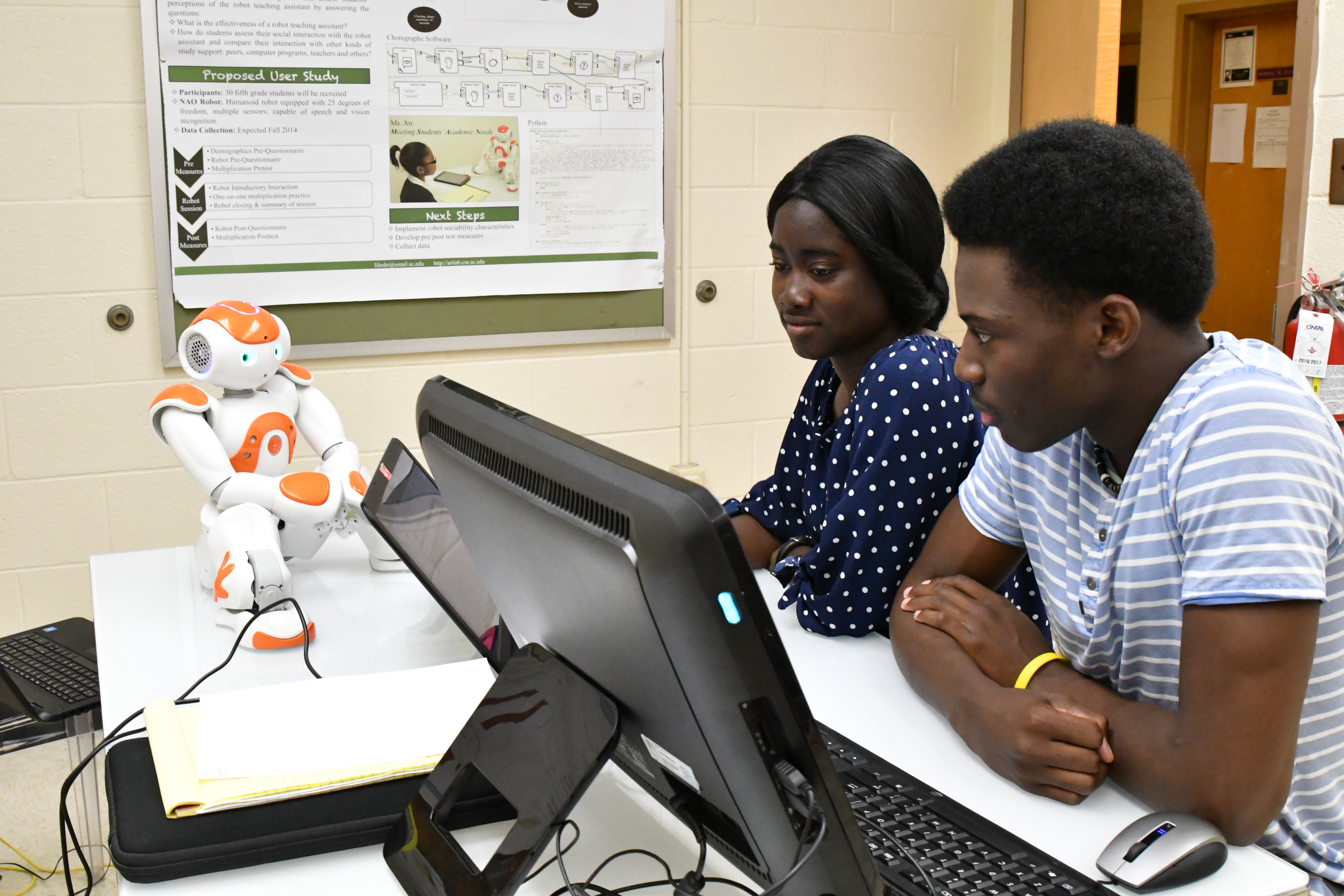 Ms. An Computer Science Ms. An (Meeting Students' Academic Needs) is a NAO humanoid robot tutor. The goal of this project is to develop Ms. An to teach students computer programming. They will have a first-hand experience being taught by a humanoid robot. Project Contact: Stephone Jeffcoat Student Email: sjeffcoat@claflin.edu |